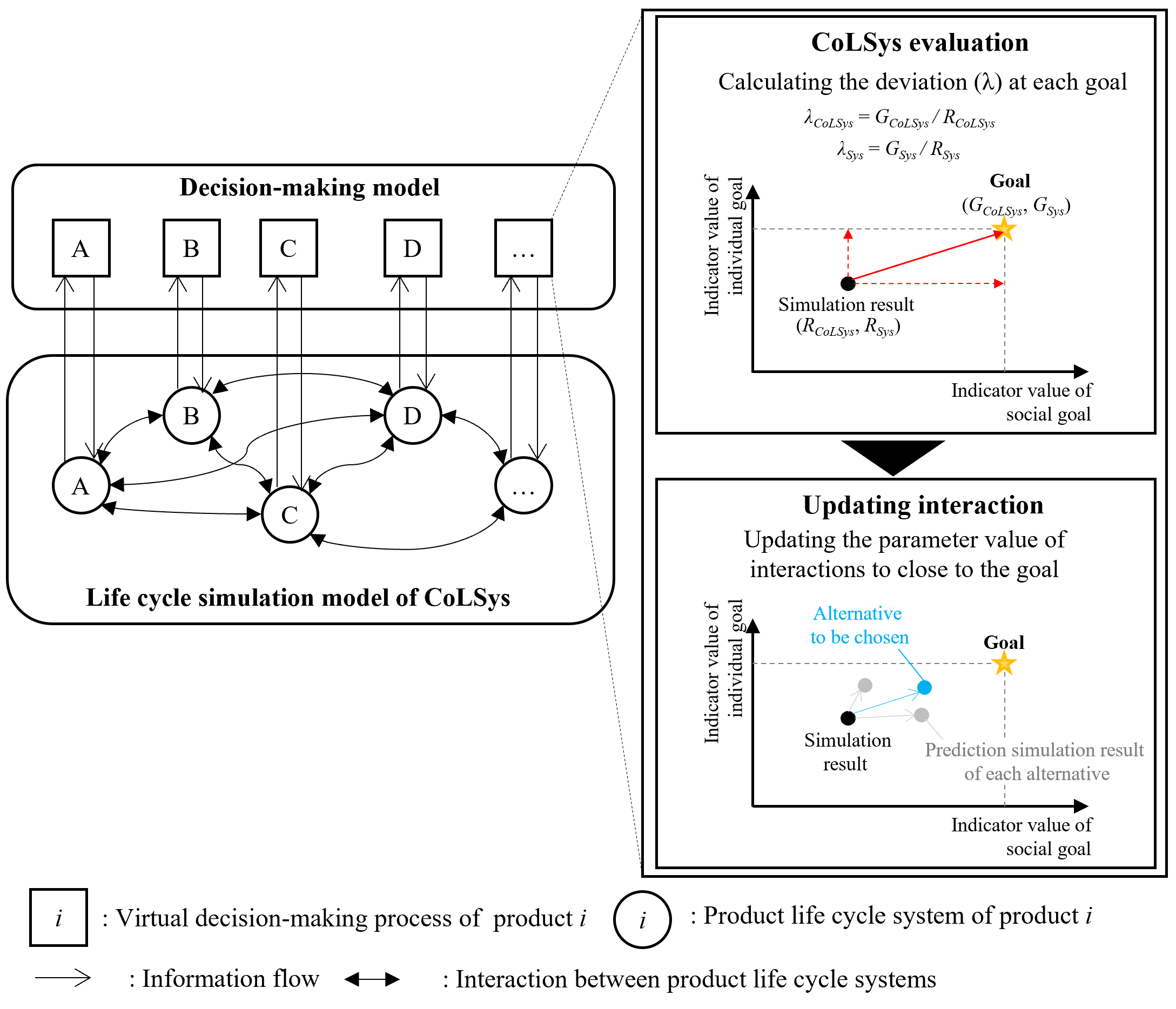 図5:意思決定モデルを内包した結合型ライフサイクルシステムズのシミュレーションの概念[6]
